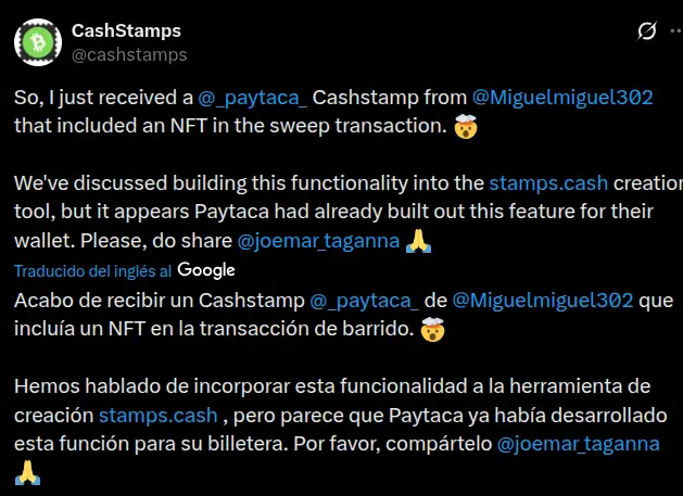Pioneros en descubrir nuevas funcionalidades de Paytaca, para regalar nuestro exclusivo NFT a través de Stamps.Cash a nuestros patrocinadores, colaboradores y asistentes de forma rápida y sencilla